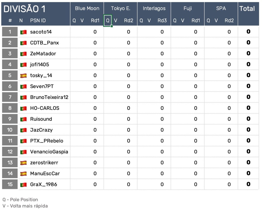 Destaque ainda para os 7 pilotos que disputarão a corrida dos campeões. Para além dos pilotos do pódio foram apurados: o Rui Brito, o Javier Alamillo, o Filipe Carvalho (jofi1405, da Caetano Caetano Auto) e o Bernardo Augusto (MrAugusto, da Caetano Auto)