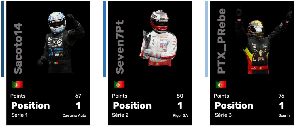 O Sacoto14 e o PTX_PRebelo alcançaram o almejado triplete, ou seja: vitória, pole position e volta mais rápida, nas series 1 e 3. O Seven7PT foi o vencedor da Serie 2, tendo ainda acumulado o ponto da pole position.