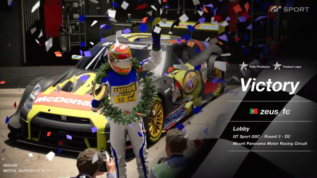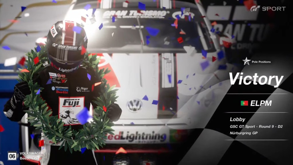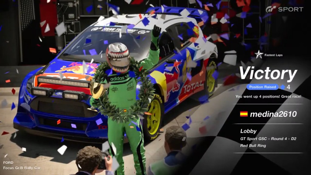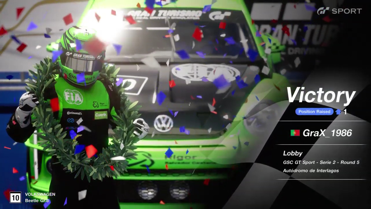 Muito satisfeito com o resultado, sabendo que neste momento levo vantagem com a corrida de descarte. Sinceramente estava mais inclinado para 3 paragens, mas seria algo que iria decidir durante a corrida. A qualificação correu-me muito mal, e a primeira curva ainda pior. Não consegui segurar o carro, e acabei perdendo 2 posições. Ao ficar em quarto e com dificuldade em ultrapassar, resolvi ir uma volta mais cedo que todos os outros. Correu bem. Depois foi gerir a diferença se bem que arrisquei em demasia com o segundo stint, fazendo demasiadas voltas. Na terceira paragem voltei a ficar com o Medina demasiado perto, e senti o fantasma de Red Bull, mas estava confiante neste circuito e acabei por conseguir me afastar, fazer a volta mais rápida e gerir na última volta.