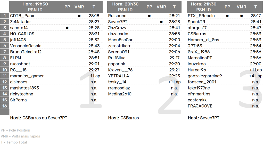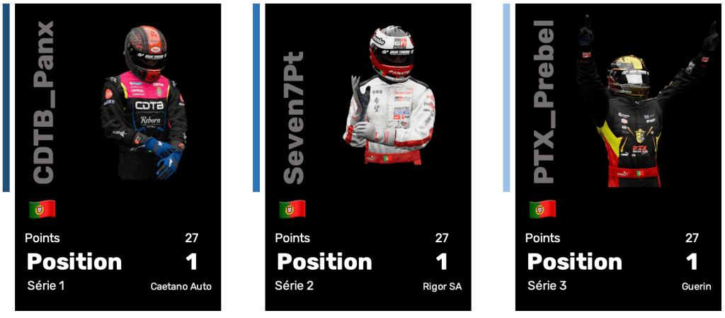 O Sacoto14 e o PTX_PRebelo alcançaram o almejado triplete, ou seja: vitória, pole position e volta mais rápida, nas series 1 e 3. O Seven7PT foi o vencedor da Serie 2, tendo ainda acumulado o ponto da pole position.